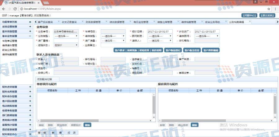 基本业务管理:车险单证管理、维修接车管理、前台业务导航、维修档案管理;