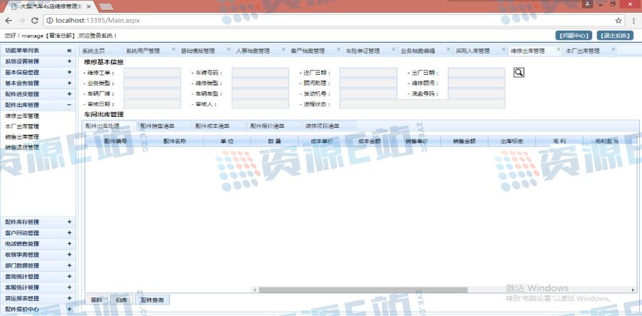 配件出库管理:维修出库管理、本厂出库管理、销售出库管理、销售退货管理;