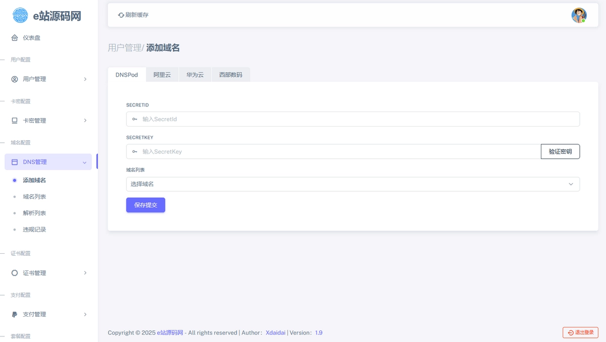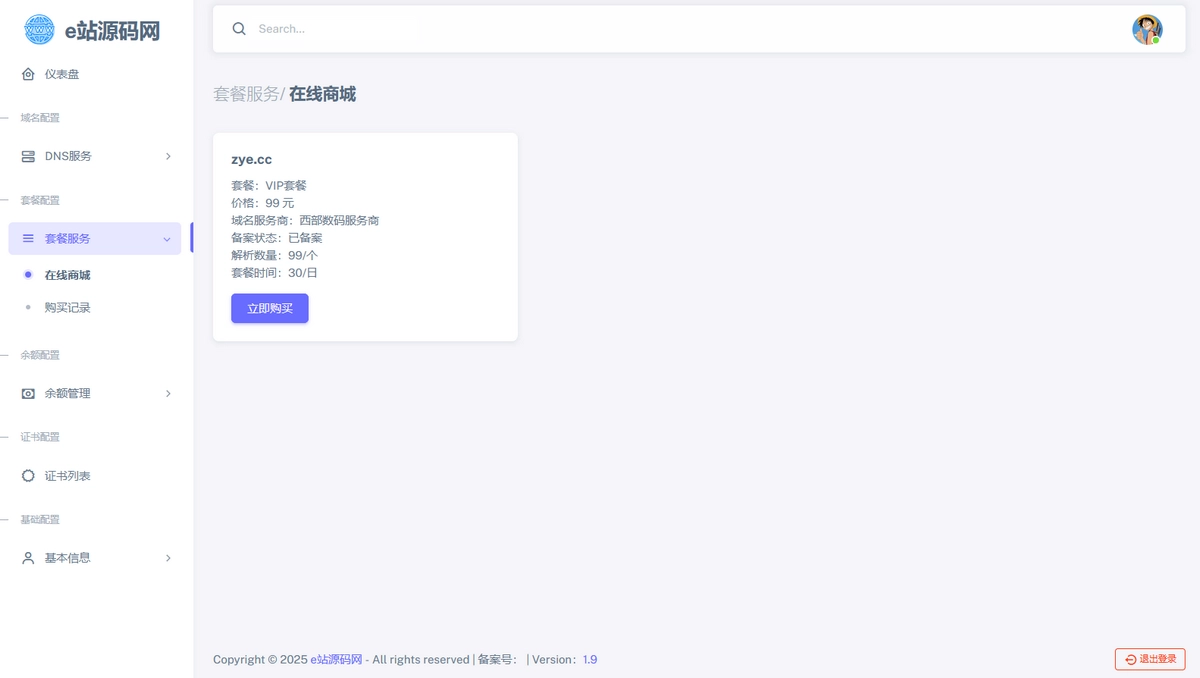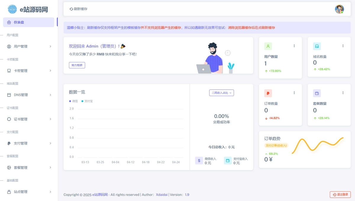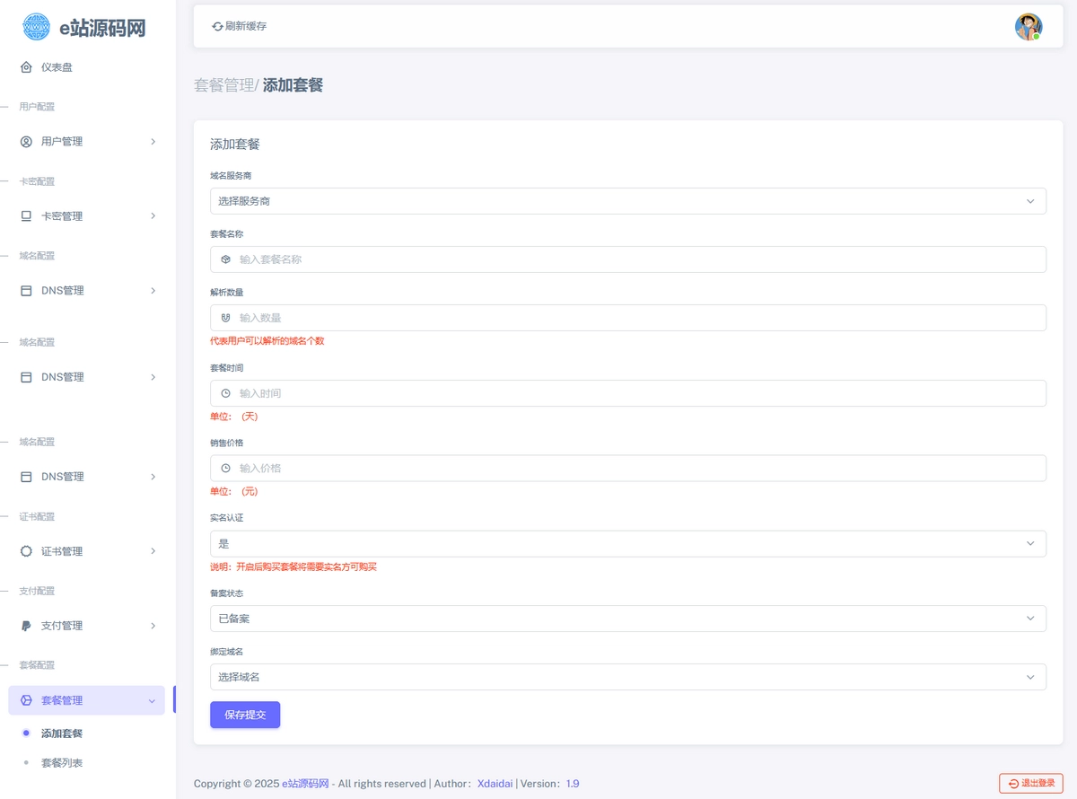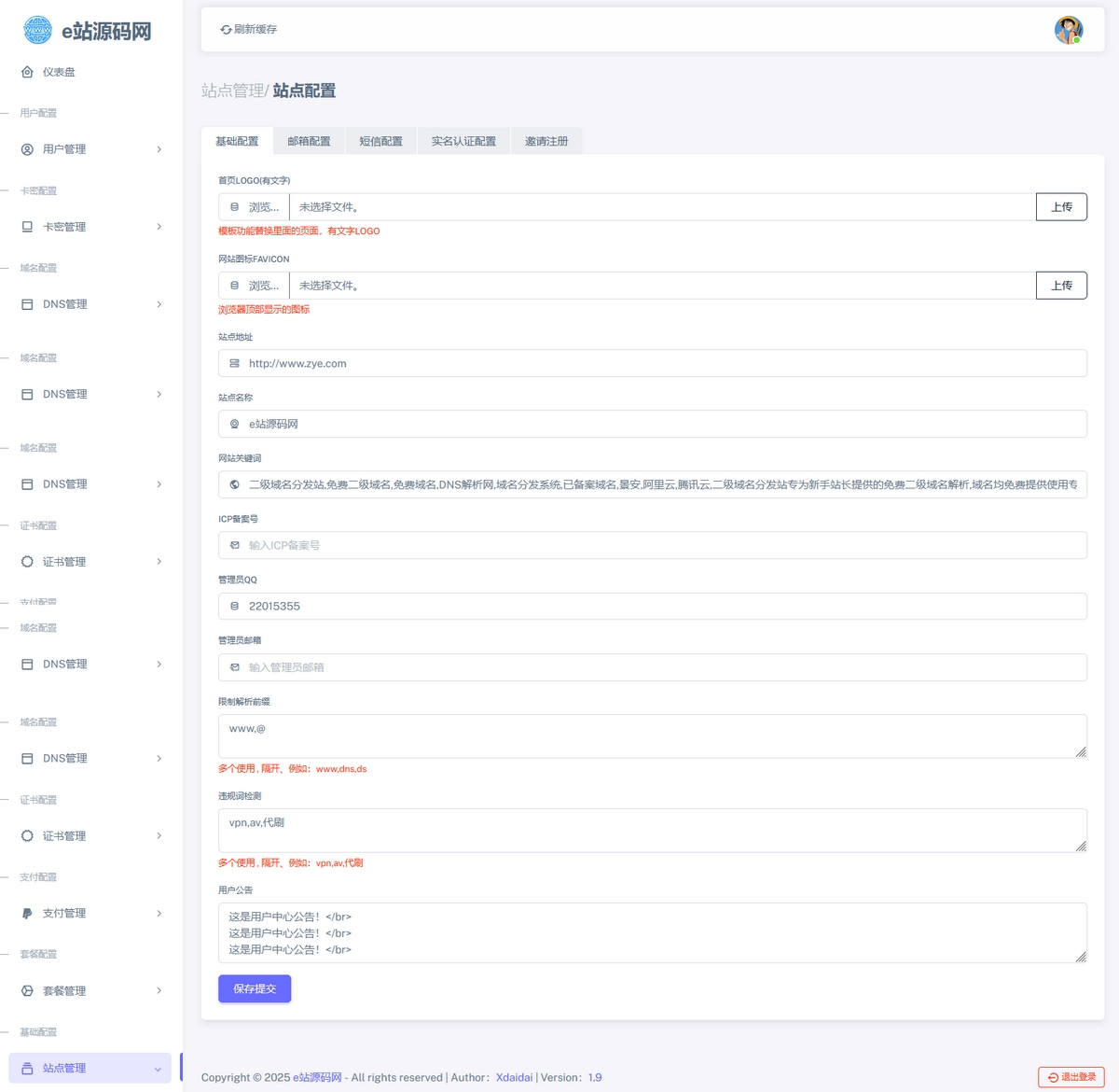 二级域名分发系统商业版网站源码,后续不知道会不会收费,自己下载学习吧,支持易支付,里面附带安装教程,一键式安装。
