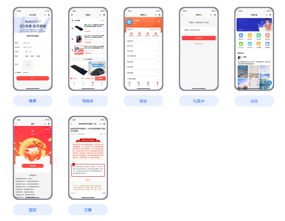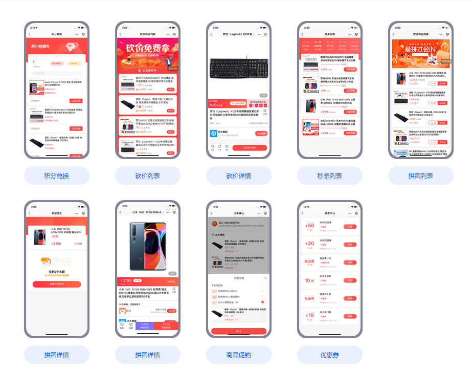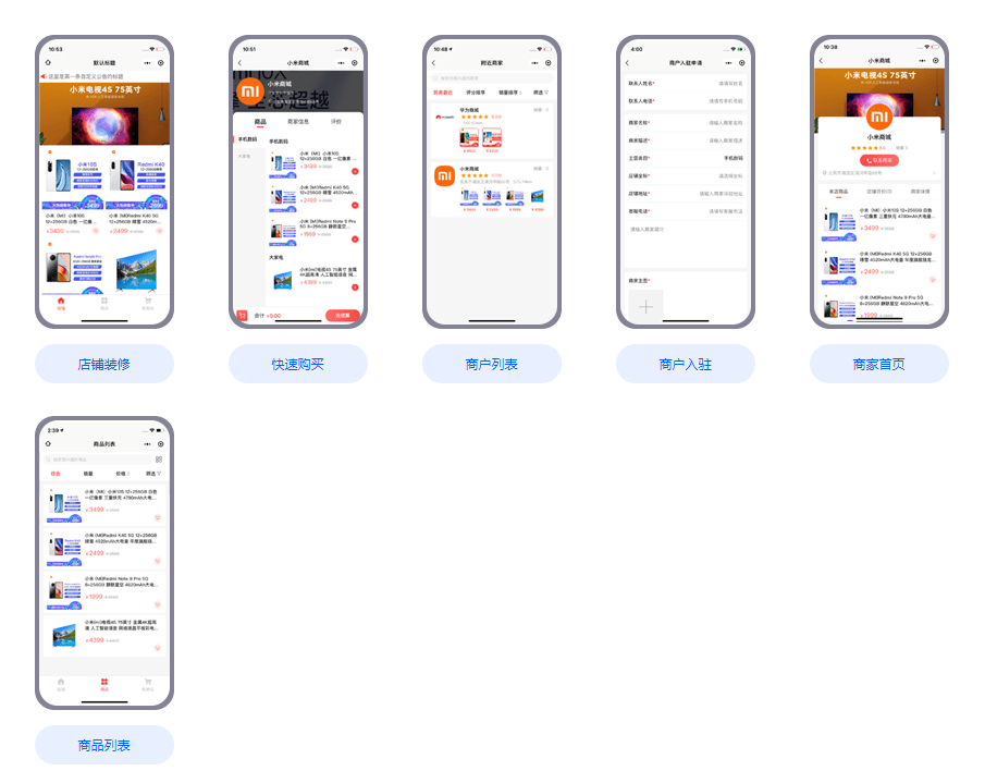 客户端:微信H5商城、微信小程序商城、百度小程序商城、头条小程序、支付宝小程序、APP商城