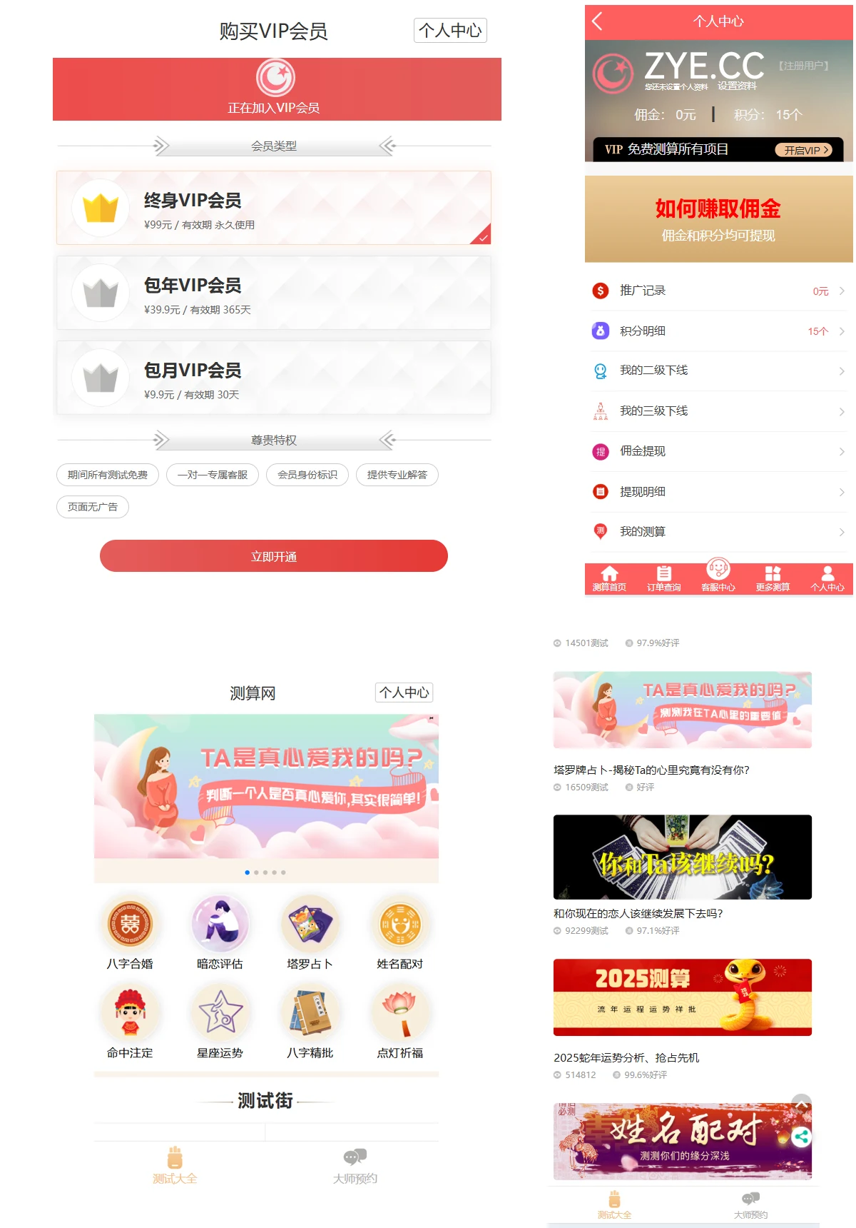 2025最新易经测算系统专业平台无减删完整开源版+支付整合+代理分销获取提成,是一个专业测算平台系统,提供八字精批,姓名详批,八字合婚等测算众多服务,功能多多…