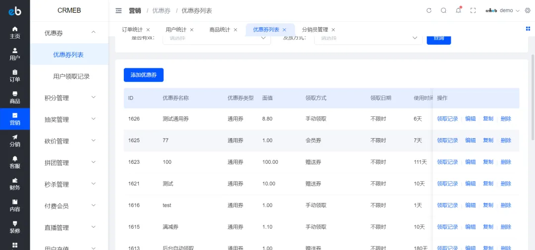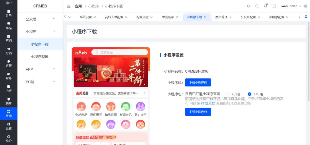 推荐一款全开源源码 CRMEB 商城系统,此系统基于 ThinkPhp6.0+uniapp 开发的客户管理加电商营销的新零售商城系统,能够真正帮助企业基于微信公众号H5、小程序、wap、pc、APP等,实现会员管理、数据分析,精准营销的电子商务管理系统。