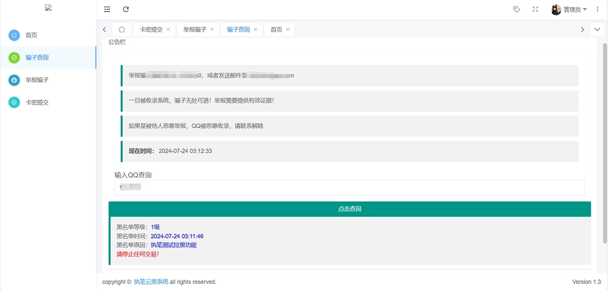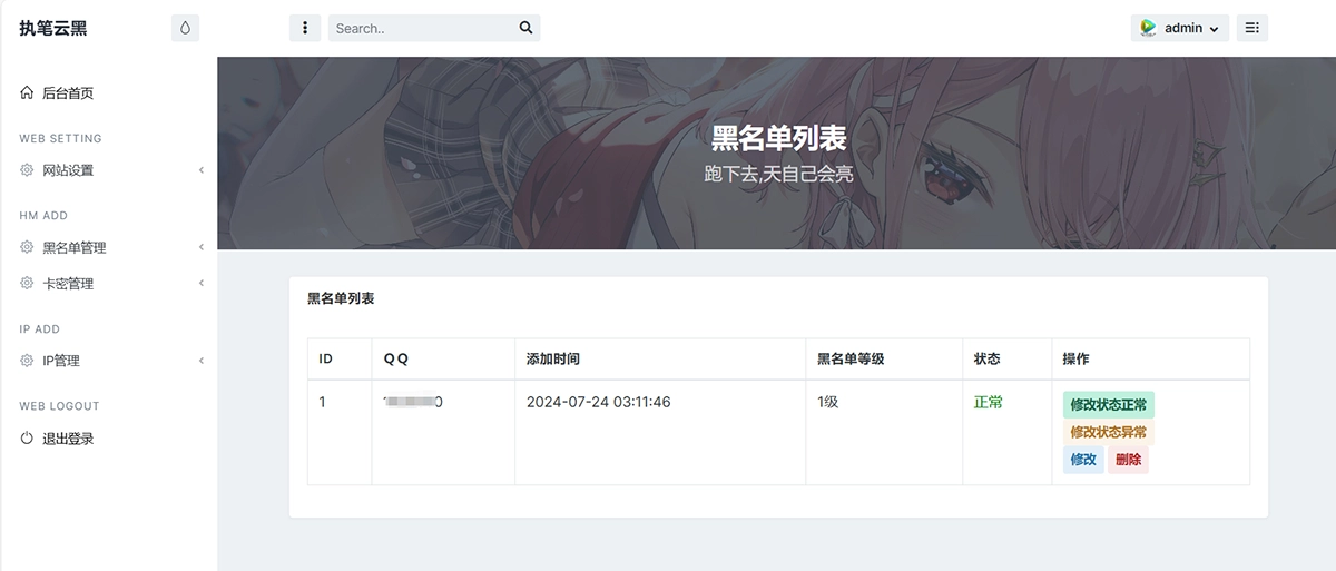云黑系统全解无加密无后门能带有卡密生成和添加黑名单等,源码放在我的网盘里已经两年之久,由于玖逸现在已经跑路了所以现在发出来分享给大家,需要的可以自己拿去而开,反正功能也不是很多具体的自己看程序截图即可。