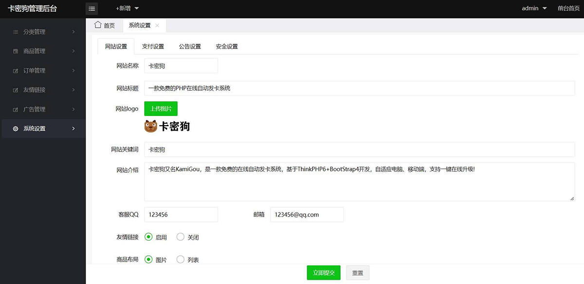 基于ThinkPHP6+BootStrap4开发的卡密狗PHP自动发卡系统源码+自适应电脑端+移动端