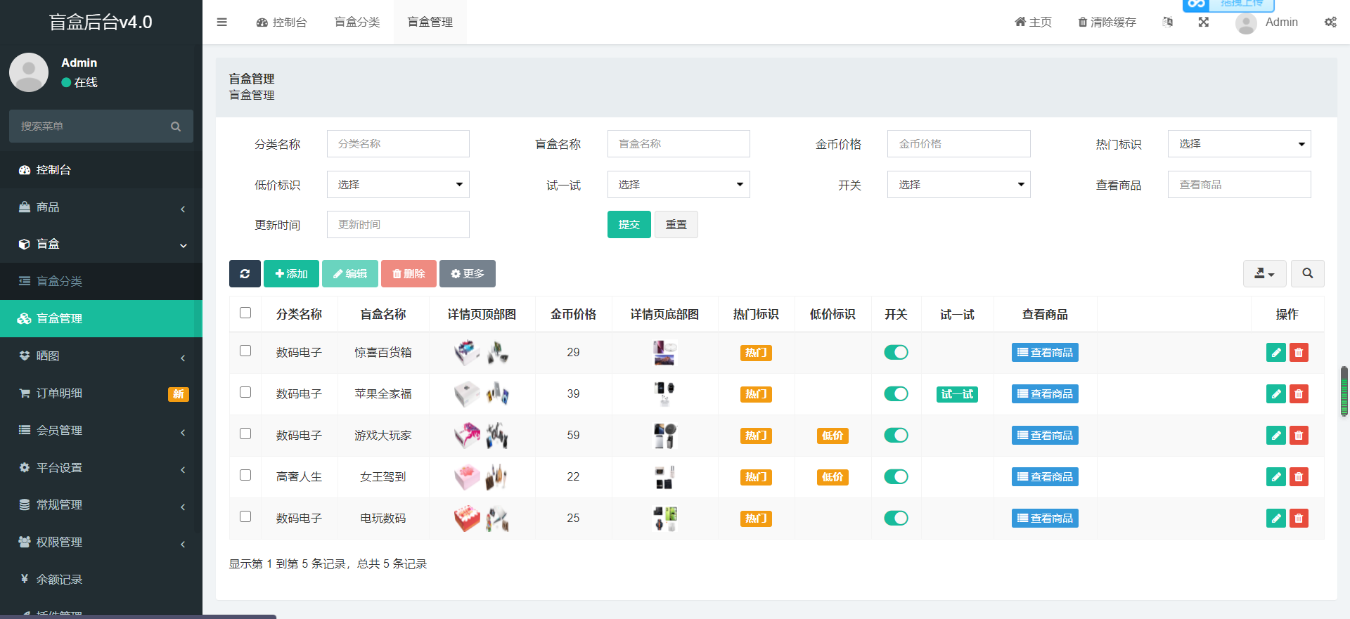 含充值3级分销,盲盒回收成余/额功能/晒图/盲盒转增功能。