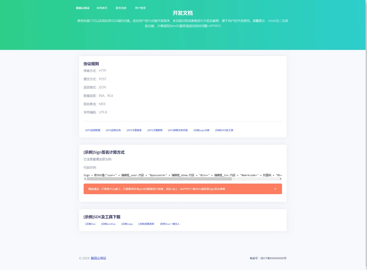 1,对接:详细的API文档,各种语言对接示例让您的接入更加简单