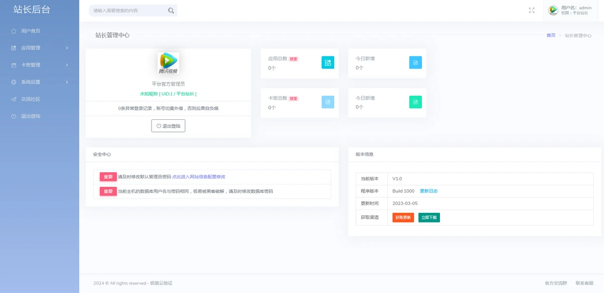 云网络验证系统云验证,多样化应用管理方式,多种项目任你开发,分布式应用开关,让您的应用开发更简单,本系统借鉴于易如意API写法及思路,完美实现多用户多应用管理。